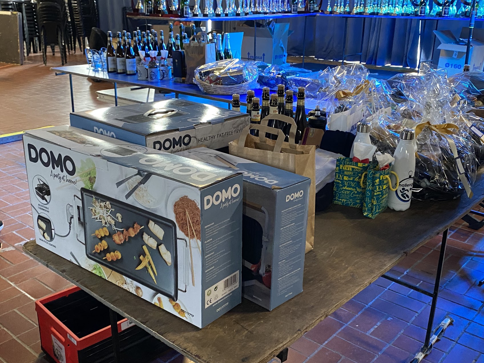 Parmis les lots, vous trouverez un montre Velom d'une valeur de 629€, de nombreux accessoires sportifs, des bouteilles Ruffus et Saint-Feuillien, des bons et abonnements pour accéder à la salle de Sport Ulteam et même des chocolats, ...